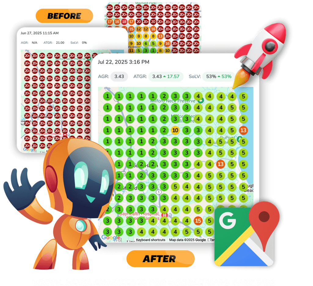 Faster ROI – Instead of hoping social media posts drive traffic, we engineer them to move your map rankings up.